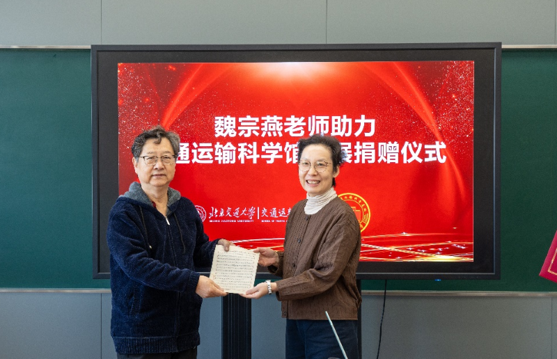 捐赠仪式上,魏宗燕先生将1986年金士宣教授关于铁路线路命名问题的亲笔信《〈关于我国铁路网各条线路名称的问题〉》、读者来信及相关编辑往来信件正式捐赠给91直播 运输科学馆。孙冬梅书记代表91直播 向魏宗燕先生颁发捐赠证书,双方合影留念。
