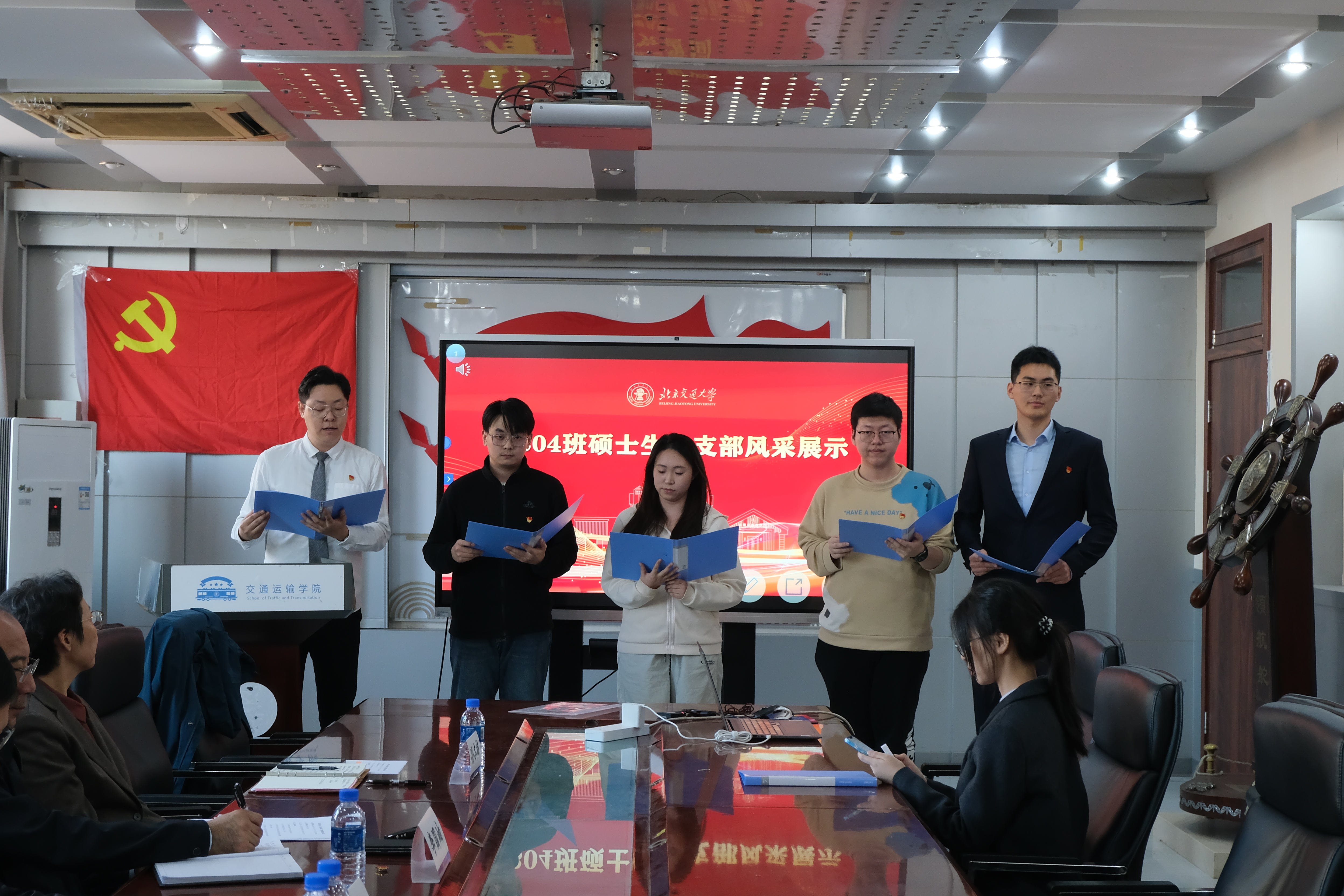 支部风采展示彰显青春力量。运输2304班硕士生党支部依次汇报支部建设成果。从党建引领、学风建设、志愿服务、科技创新、文体活动等方面全面展示了支部建设亮点,展现出团结奋进、积极进取的精神风貌。