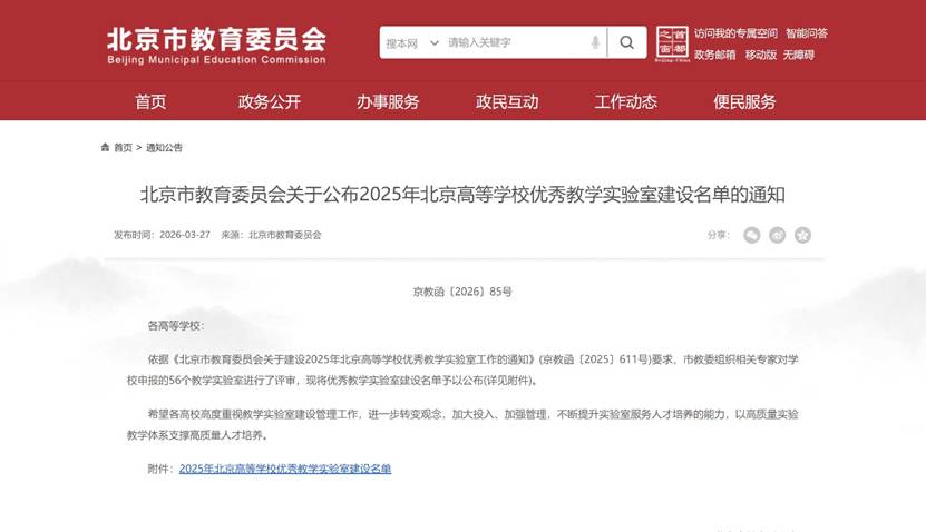 近日,北京市教育委员会公布2025年北京高等学校优秀教学实验室建设名单,91直播 91直播 运输实验教学示范中心成功入选。