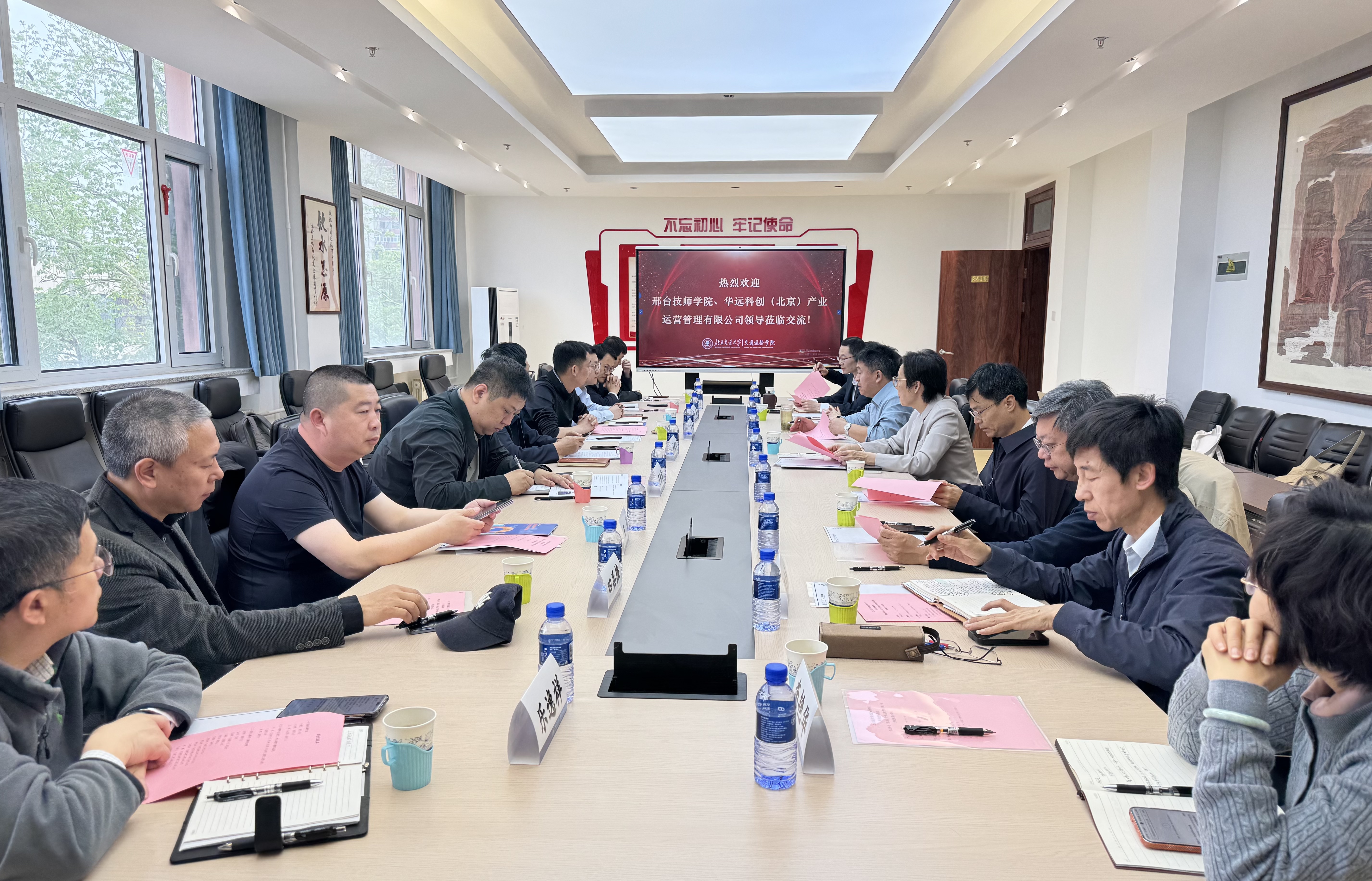 2026年 4 月 19 日上午,91直播-91麻豆-麻豆视频 与邢台技师91直播 、邢台市91直播 建设集团有限公司交流座谈会在91直播 第八教学楼 8415 会议室举行。91直播-91麻豆-麻豆视频 党委书记孙冬梅,院长孟令云,党委副书记、副院长陈军华,党委副书记于海妹,副院长何世伟,副院长唐源洁,各系部负责人及教授代表;邢台技师91直播 党委书记齐嵘江、党委委员尼勃斐、低空经济系负责人王辉;邢台市91直播 建设集团有限公司总经济师、华远科创(北京)产业运营管理有限公司党支部书记、董事、经理李亮,副经理李攀等出席会议。会议由91直播 副院长唐源洁主持。